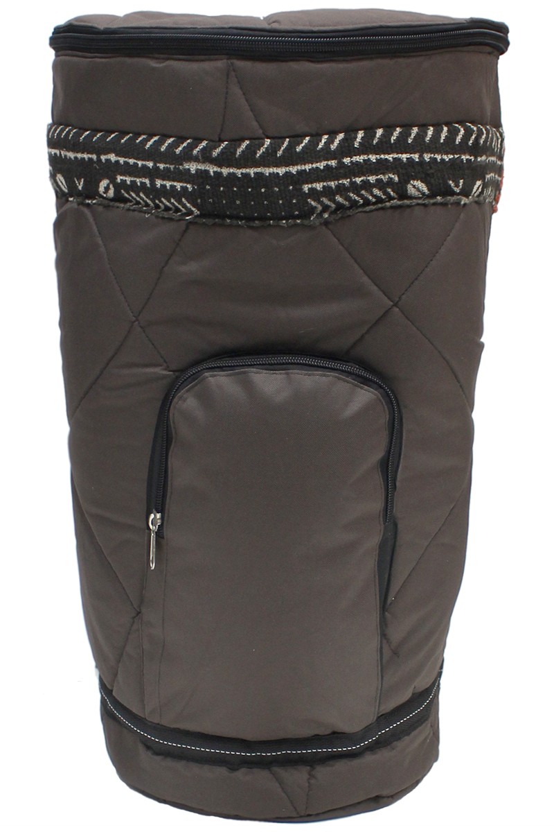 This is a great introductory level djembe case. We recommend this case for the budget conscious and those needing lightweight protection of their djembe. This case is made and designed in Mali. It features backpack straps and zippered pockets.