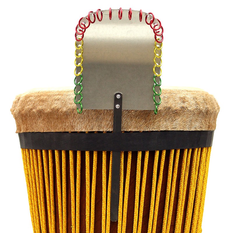 This is a large rubber band that is used for holding sege sege in place on the djembe. It is sized to fit very tightly around the average size djembe, and it is one continuous piece without knots or splices. We have found that it greatly reduces the struggle of fitting the sege sege in between the loops of the rope on the top rings.