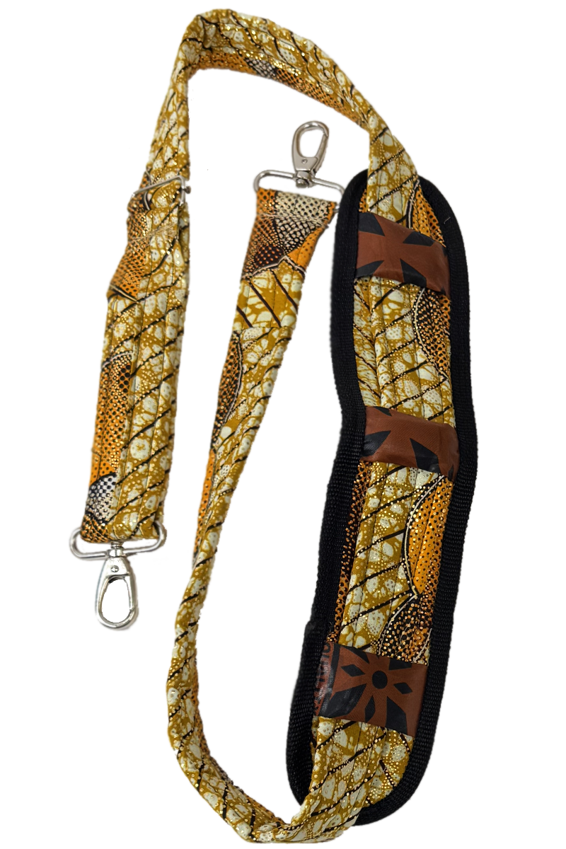 These are great straps for sitting and playing. The straps are made by Bolokada Conde, featuring wonderful West African patterns.
