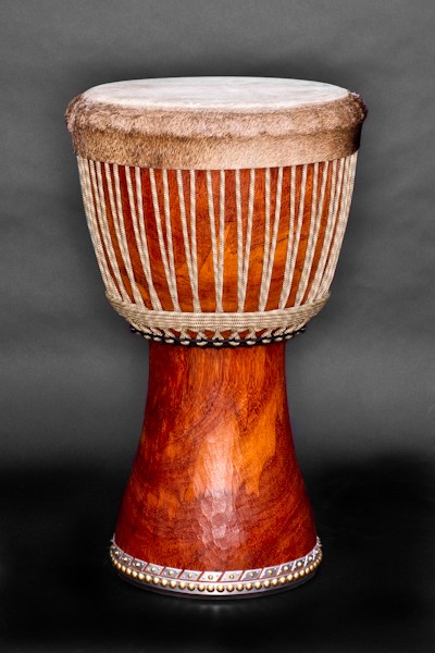 Here's another beautiful drum resulting from our partnership with Djembekan Jewelry. DSD has been offering these elaborate djembe decorations to the public for some time now, primarily on special order. Grant’s work has been made famous due to the elaborate work he has done on Mamady Keita’s personal drums. Grant’s metal work is extremely original and highly sought after. These decorations have raised the bar of djembe customization.