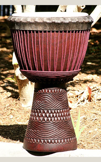 This is a rare piece of Gele wood. It is extremely hard and almost black in color. This is a standout amongst djembes!