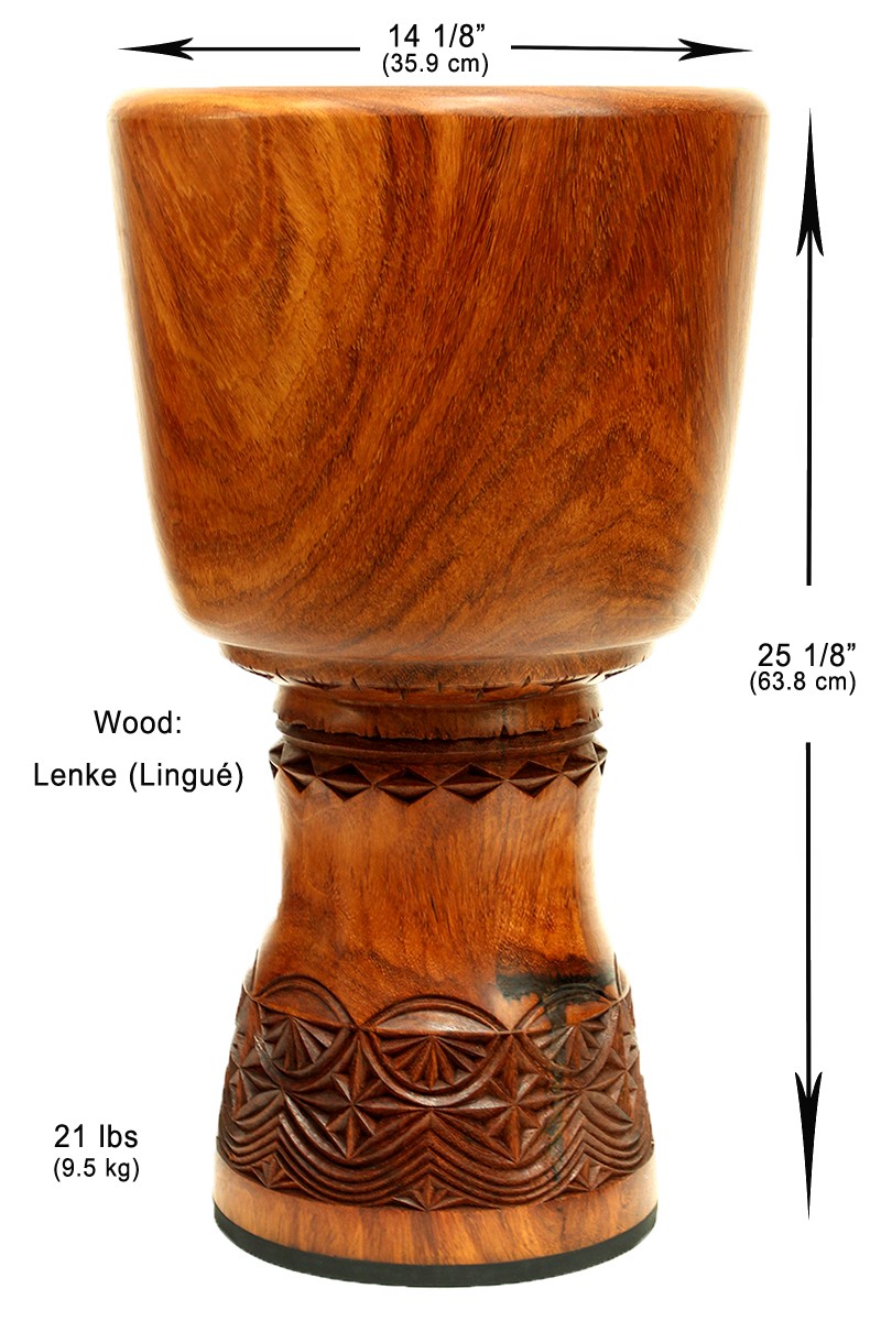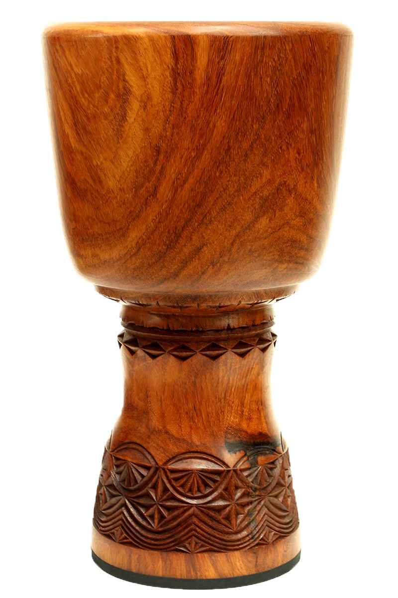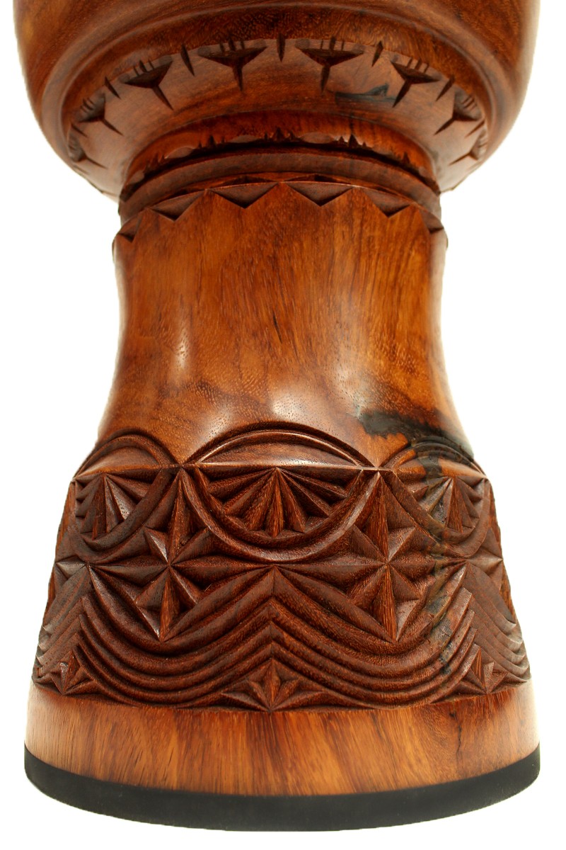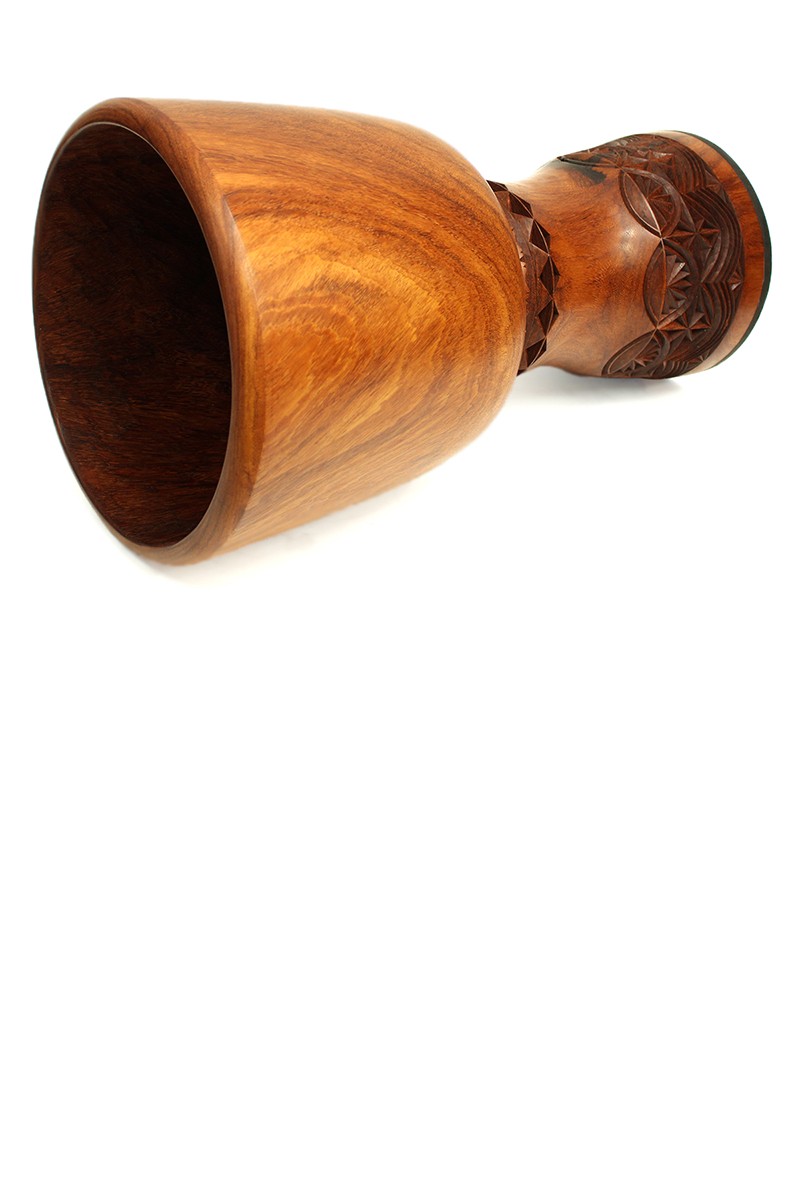 The decorative carving on this djembe shell was carved by the extremely talented Mohamed Kaleb Sylla in Conakry, Guinea, Africa.
