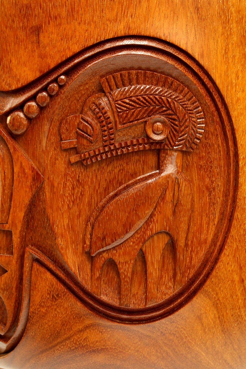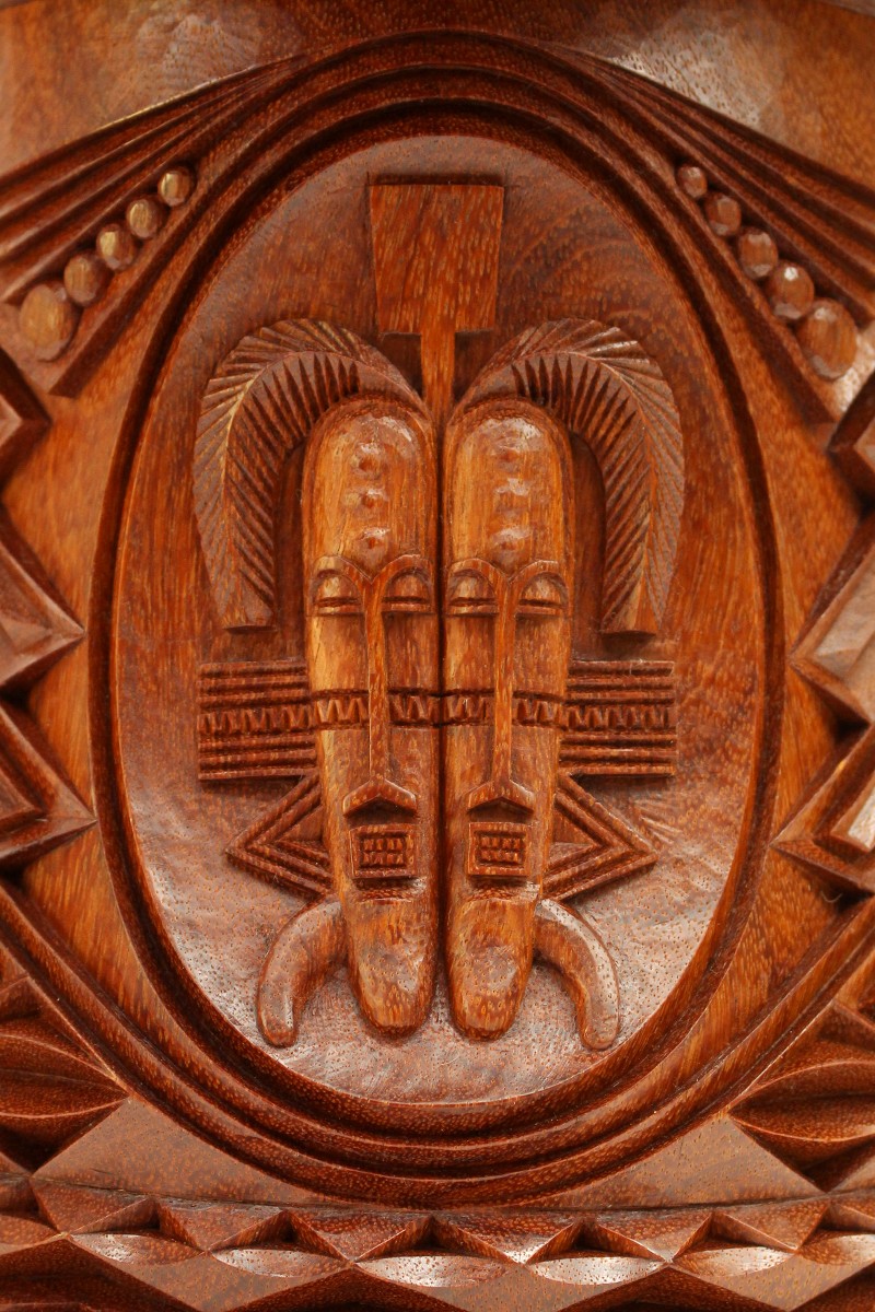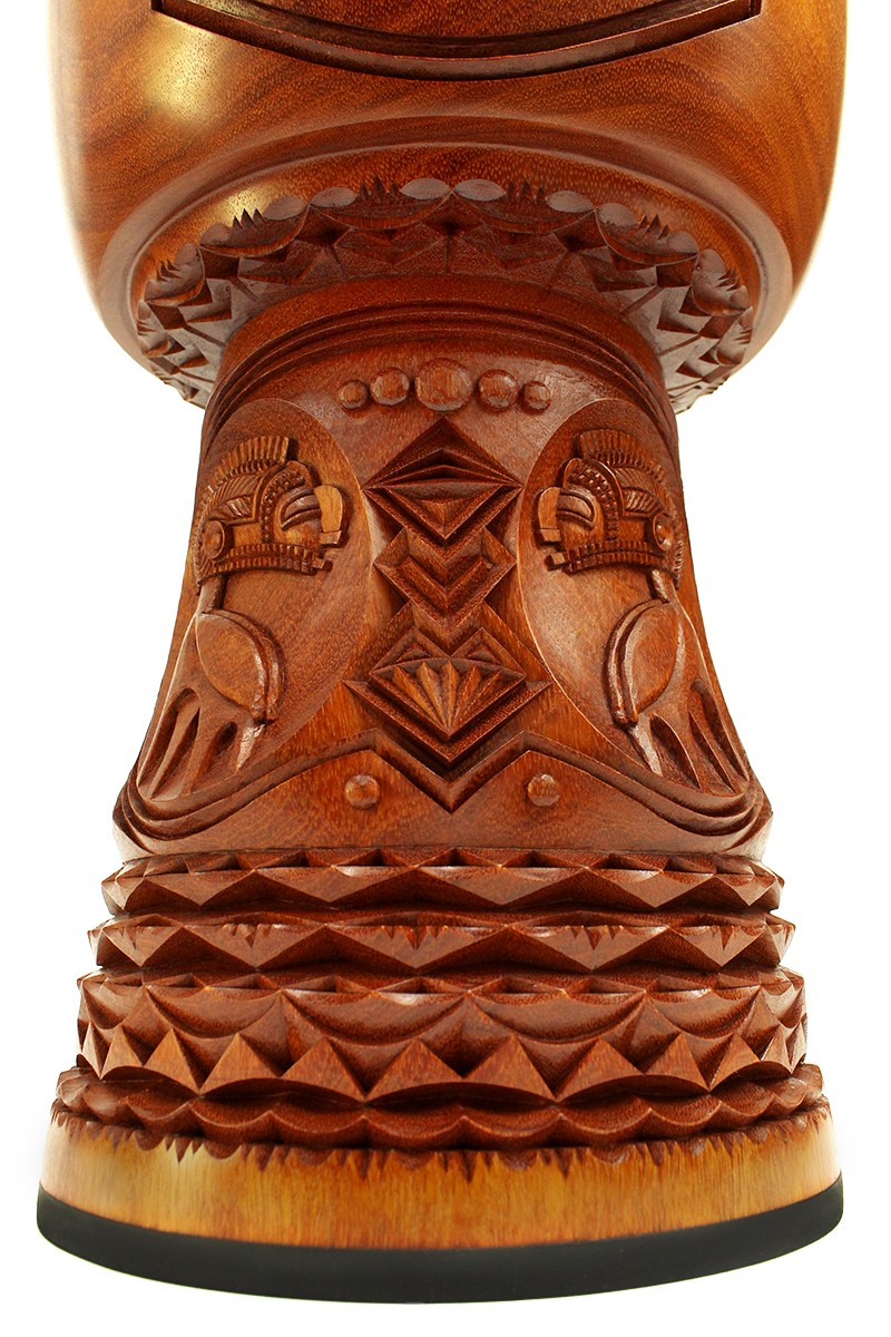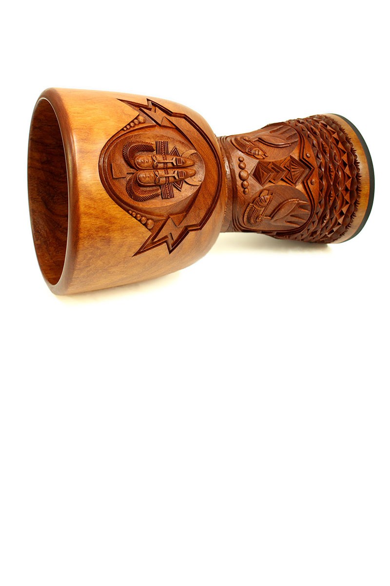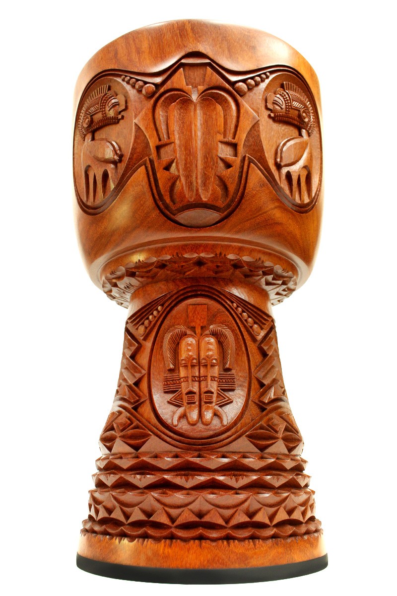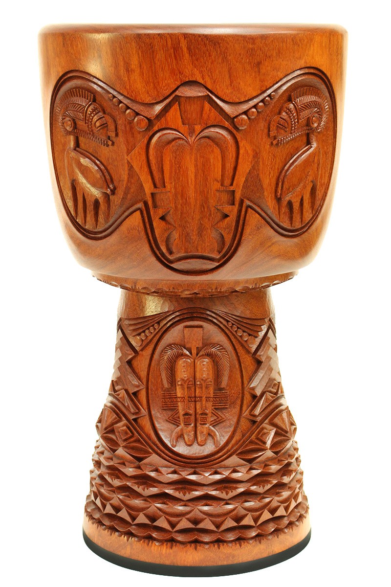 The decorative carving on this djembe shell was carved by the extremely talented Mohamed Kaleb Sylla in Conakry, Guinea, Africa.