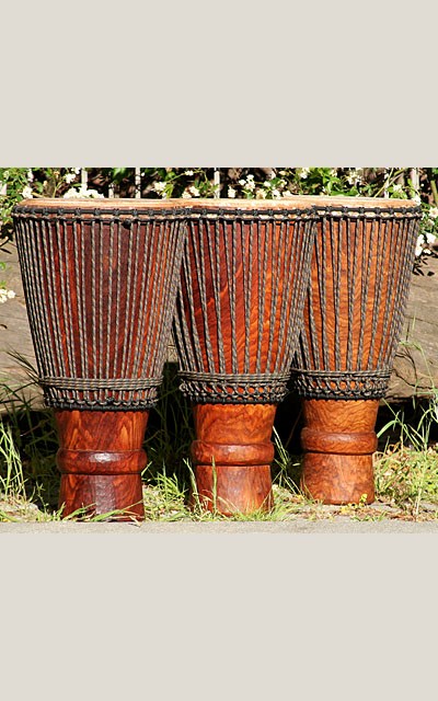 This is a solid shell Bugarabu from Mali, West Africa. They are carved by the same carver that carves our djembes and dunun and are excellent quality. Many think of Bugarabu as a cross between a conga and a djembe. The tones and slaps have a very similar feel to a conga and the bass is more pronounced, similar to the djembe. Bugarabu originate from the Casamance region of Senegal and are generally played in sets of 2 - 5.  We head these drums with thick cow skin which brings out the best combination of bass, tone and slap.