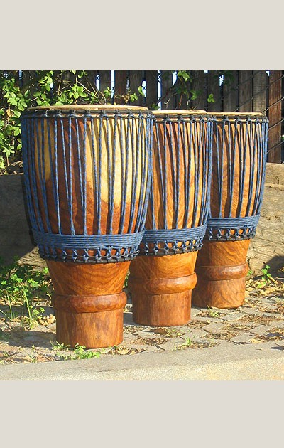 This is a  solid shell Bugarabu from Mali, West Africa. They are carved by the same carver that carves our djembes and dunun and are excellent quality. Many think of Bugarabu as a cross between a conga and a djembe. The tones and slaps have a very similar feel to a conga and the bass is more pronounced, similar to the djembe. Bugarabu originate from the Casamance region of Senegal and are generally played in sets of 2 - 5.  We head these drums with thick cow skin which brings out the best combination of bass, tone and slap.