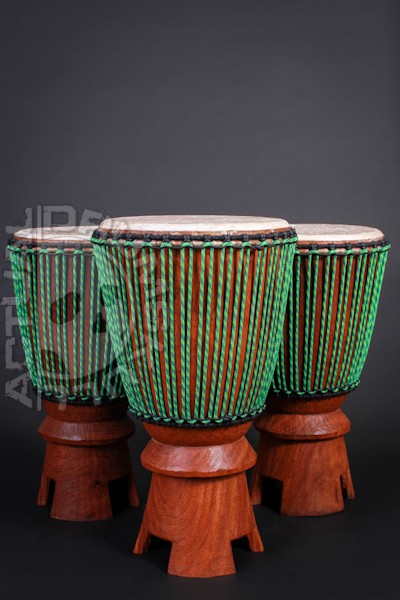 Many think of Bugarabu as a cross between a conga and a djembe. The    tones and slaps have a very similar feel to a conga and the bass is more    pronounced, similar to the djembe. Bugarabu originate from the    Casamance region of Senegal and are generally played in sets of 2 - 5.     We head these drums with thick cow skin which brings out the best    combination of bass, tone and slap.