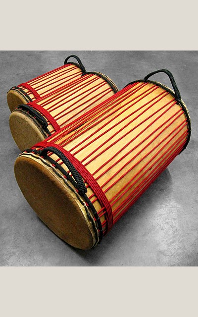 Carved out of a single piece of wood, traditional Drumskull dununs originate in the same locations as our djembes. As djembe is strong in the countries of Guinea, Mali, and Senegal, so too is dunun. Due to our relationship with the carvers of these countries, aesthetically our traditional dunun are known for their consistency in size, shape and roundness. Through the combination of premier quality hand carved shells, cow skins from the country of origin, and our heading method, these drums remain true to tradition. (Custom Sticks Included)