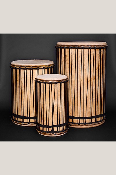 Carved out of a single piece of wood, traditional Drumskull dununs originate in the same locations as our djembes. As djembe is strong in the countries of Guinea, Mali, and Senegal, so too is dunun. Due to our relationship with the carvers of these countries, aesthetically our traditional dunun are known for their consistency in size, shape and roundness. Through the combination of premier quality hand carved shells, cow skins from the country of origin, and our heading method, these drums remain true to tradition. (Custom Sticks Included)