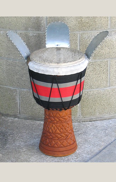 This is a seriously custom djembe that we headed with the soloist in mind. The shell is Lenke wood from Guinea and is very well carved with good wall thickness and great proportions. We used a heavier skin and pulled it very tight. The sound is high and extremely clean. This djembe definitely pulls a lot of volume and is a "fast" playing drum due to the tight tuning. It comes with the custom outer rope wrap and a set of 3 large Sege Sege from Guinea (over $100 value). We highly recommend this djembe for someone looking to increase their speed and volume while soloing. This is a very fun djembe to play!