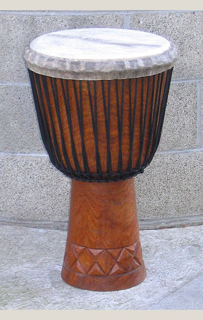 Here is another great example of the professional quality that DrumSkull Drums offers in West African percussion!! This particular drum has the sound, feel, and ease of play that the West African Masters Drummers look for in their own personal djembes. This is the ideal instrument for professional musicians, students of West African music, and recreational drummers. It is a custom djembe from start to finish.