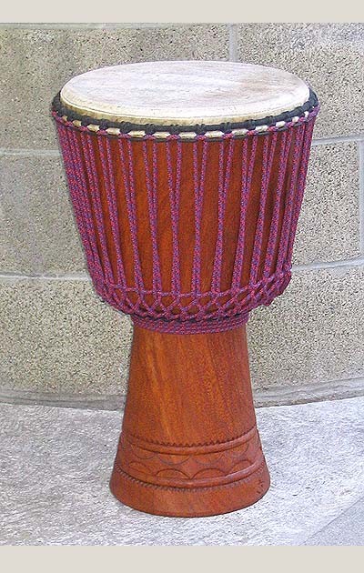 This is the bargain of the year! This an extremely nice Lenke wood djembe from Guinea. The bowl of the drum had a crack in it that we have repaired and know will stand the test of time. However, we don't feel comfortable about charging full price for a shell that has been repaired, so we are discounting $120 off of our regular price. With that said, this djembe has got it! We love the feel - big bass, deep tone and a clean slap.