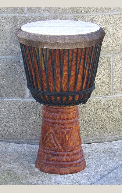 Here is another great example of the professional quality that DrumSkull Drums offers in West African percussion!! This particular drum has the sound, feel, and ease of play that the West African Masters Drummers look for in their own personal djembes. This is the ideal instrument for professional musicians, students of West African music, and recreational drummers. It is a custom djembe from start to finish.