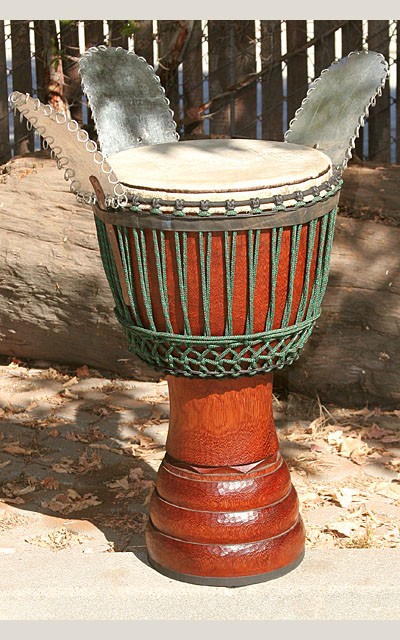 DSD Comment: This is hands down one of the most ballistic djembes we have ever built! Yes...we've said this before but sometimes we even suprise ourselves! We built this drum to be a solo machine. It been headed with a thin cow which has been tuned to new levels. This is an effortless drum for soloing over the ensamble. Not recommended for the beginner. Definately recommended for the player who wants an absolute stand out drum!