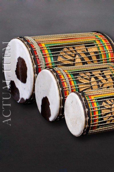 Carved out of a single piece of wood, traditional Drumskull dununs originate in the same locations as our djembes. As djembe is strong in the countries of Guinea, Mali, and Senegal, so too is dunun. Due to our relationship with the carvers of these countries, aesthetically our traditional dunun are known for their consistency in size, shape and roundness. Through the combination of premier quality hand carved shells, cow skins, and our heading method, these drums remain true to tradition. (Custom Stick Included)
