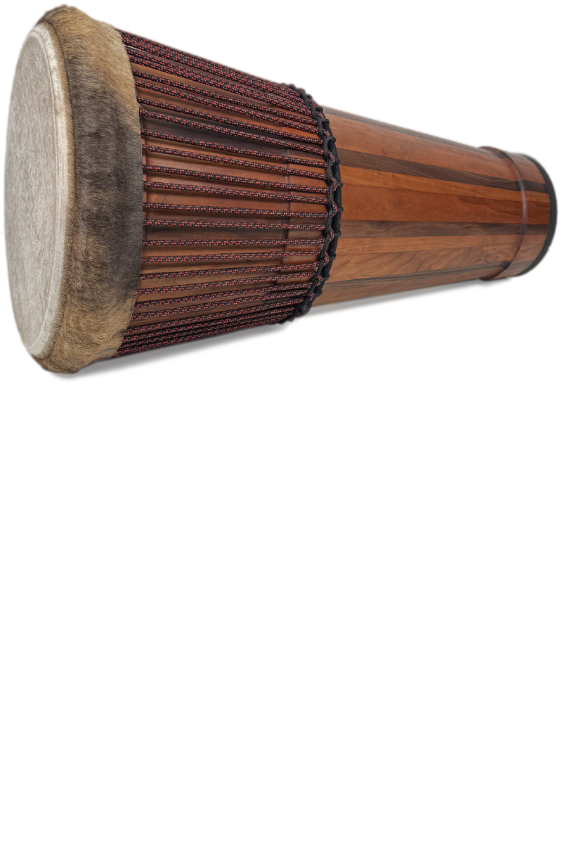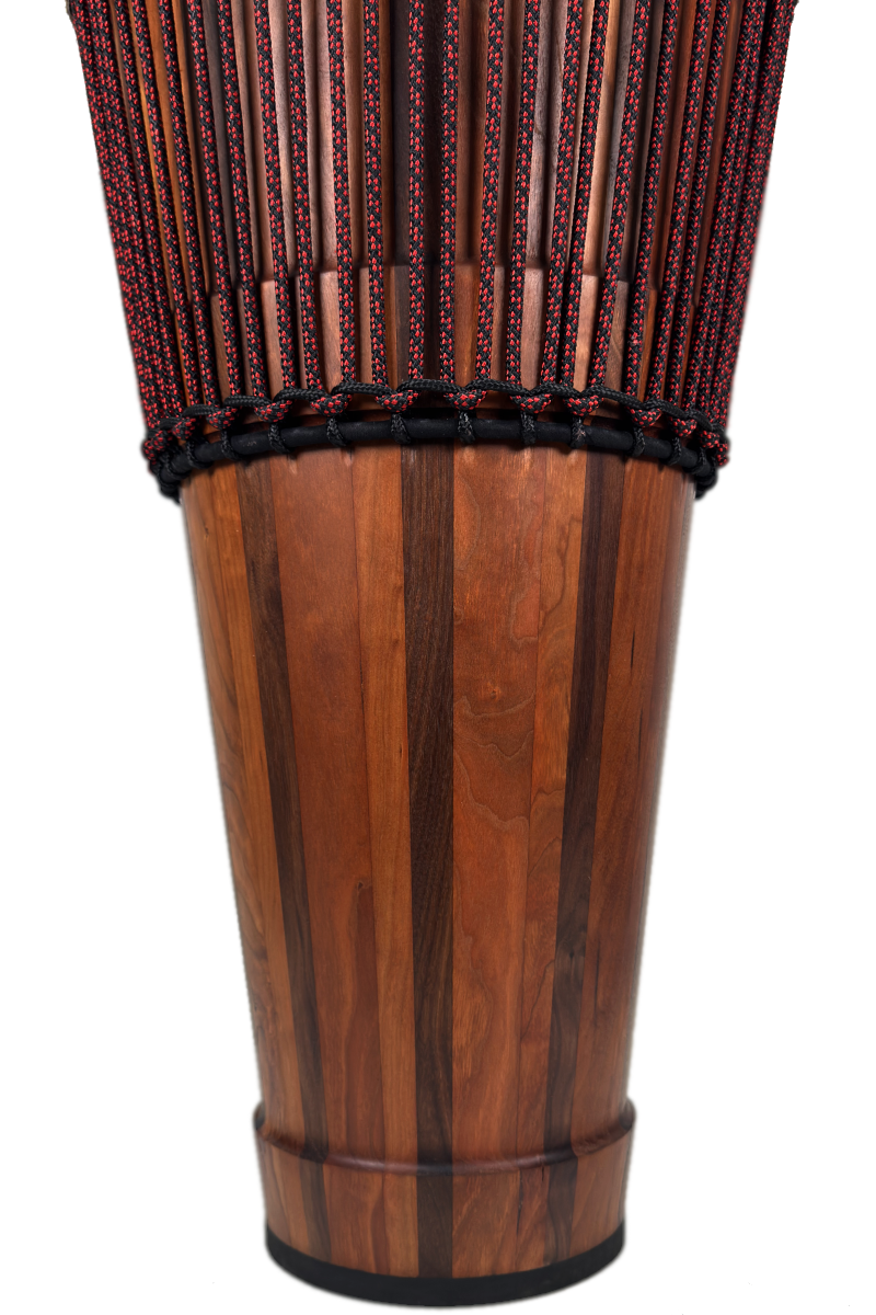 This is a Drumskull Drums Ashiko made with staved Cherry and Walnut wood.