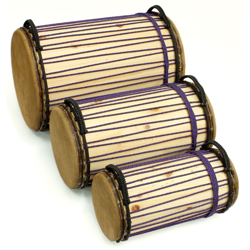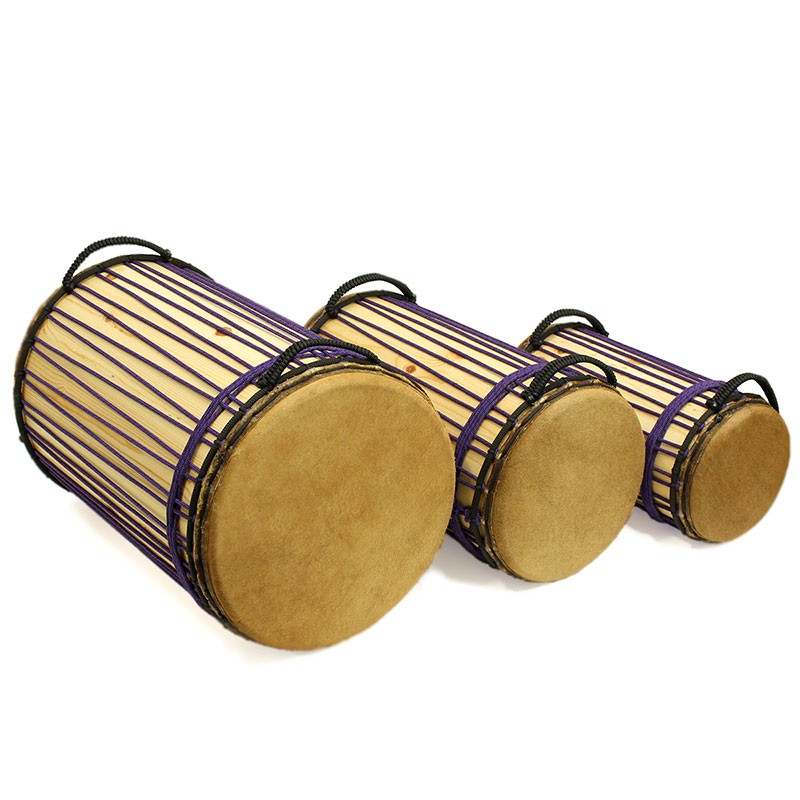 While many attempt to construct traditional instruments using modern practices, few manage to retain the authenticity of the original. Our custom dunun have long set the standard for this fusion. Characterized by their exceptional beauty and warm tones, these modern dunun take the tradition one step further. Our custom design consists of staved wood construction, cow skins from Guinea, and our traditional heading technique. (Custom Sticks Included)