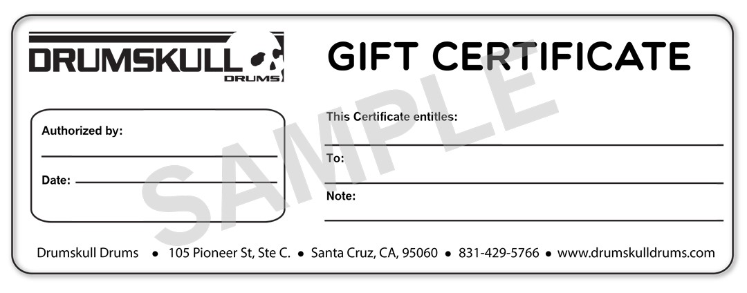 The Drumskull Drums Gift Certificate is an excellent way to show someone you care, even though you may not know exactly what they are looking for. These are a great gift for any occasion, and they are valid for one year. This gives the recipient ample time to decide on their gift without feeling rushed. This is a great way to give a gift that you know will be put to use and definitely appreciated!