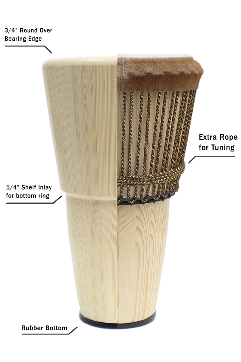 This is a Drumskull Drums Ashiko made with staved Pine wood.